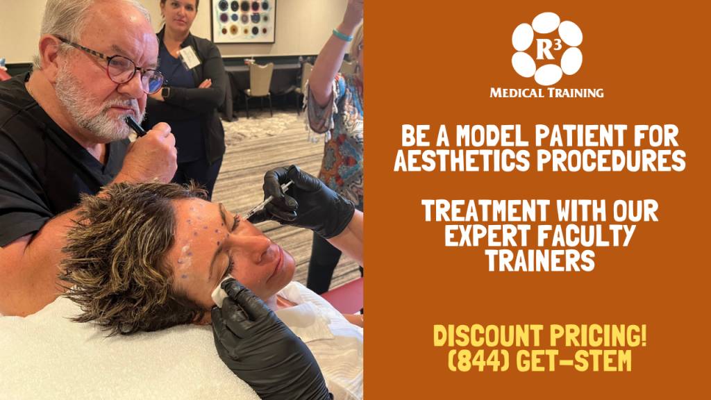 How does it work to be a patient model? Simply call R3 Stem Cell today at (844) GET-STEM and we will set you up with a free consultation to see if you are a candidate. Then we will get you scheduled for treatment as a patient model, either at one of our training workshops or as a Faculty practice patient (depends on complexity).