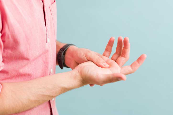 The initial symptoms of CTS include burning, itching numbness, or tingling sensation in the lower portion of the affected limb, particularly the palm, thumb, middle finger, and index finger. The symptoms usually occur at night because most people sleep with a flexed wrist, which worsens the situation.